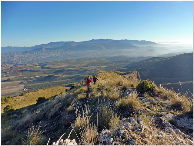 Desde donde hemos dejado el coche iremos por la calle a coger el desvío cerca del cementerio que sube cerca del barranco de los Pilones hacia la Sierra de Larva, una cuesta llevadera por un camino con recalzos, al frente vemos la cueva Josa que nos queda algo lejos para ir, pero nos indica que no muy lejos tenemos que dejar el camino para subir campo a través entre esparto hacia la raspa de Peñas Bermejas, por ella nos dirigimos a buscar el vértice de los Picones, este vértice ofrece unas vistas por lo que merece llegar hasta él, podemos ver los cercanos Chantre, Umbría o cerro del Buitre de Cabra del Santo Cristo, la Cuerda de Magina, cerca el Aznaitín, Sierra de la Golondrina y Serrezuela algo más lejos, la Sierra de las Villas, Sierra de Cazorla, Los Agrios, Jabalcón, Sierra de Baza y Sierra Nevada , una maravilla.