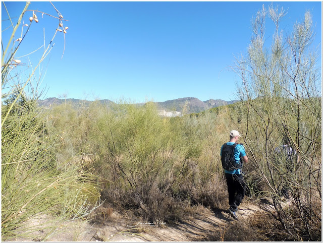 Volvemos al camino Mozárabe que ahora va a ir bajando, nosotros lo dejaremos en un sendero que nos baja hacia el valle de Belén , con cuidado llegamos al camino ya que hay mucha inclinación y piedras sueltas, recorremos el camino y nos encontramos con algo inesperado, una valla donde nos indica que no se puede pasar con muchos carteles, estamos ante una situación que no habíamos contemplado al trazar la ruta, viendo el mapa vemos que hay un camino alternativo a unos metros para evitar pasar por el cortijo, aun así observamos que al lado de la puerta hay muchas rodadas de bicicletas y marcas de suelas, a pocos metros llegamos a ese camino en el que nos adentramos al principio se ve algo cerrado pero se puede pasar, mas adelante empieza a cerrarse de vegetación y zarzas haciendo casi imposible el paso, no hay manera ni por arriba, solo nos queda la opción de retroceder teniendo que modificar toda la ruta, así que tomamos la decisión de salir al camino del cortijo, con cierta dificultad llegamos al camino, al llegar a unos minutos nos pasa un grupo grande de ciclistas que han pasado por el cortijo sin problema, después preguntamos y efectivamente es una zona privada pero no ponen pegas así que podíamos a ver ahorrado ese tramo, ante otro de los cortijos donde no hay nadie, en los anteriores si nos paramos a comer algo.